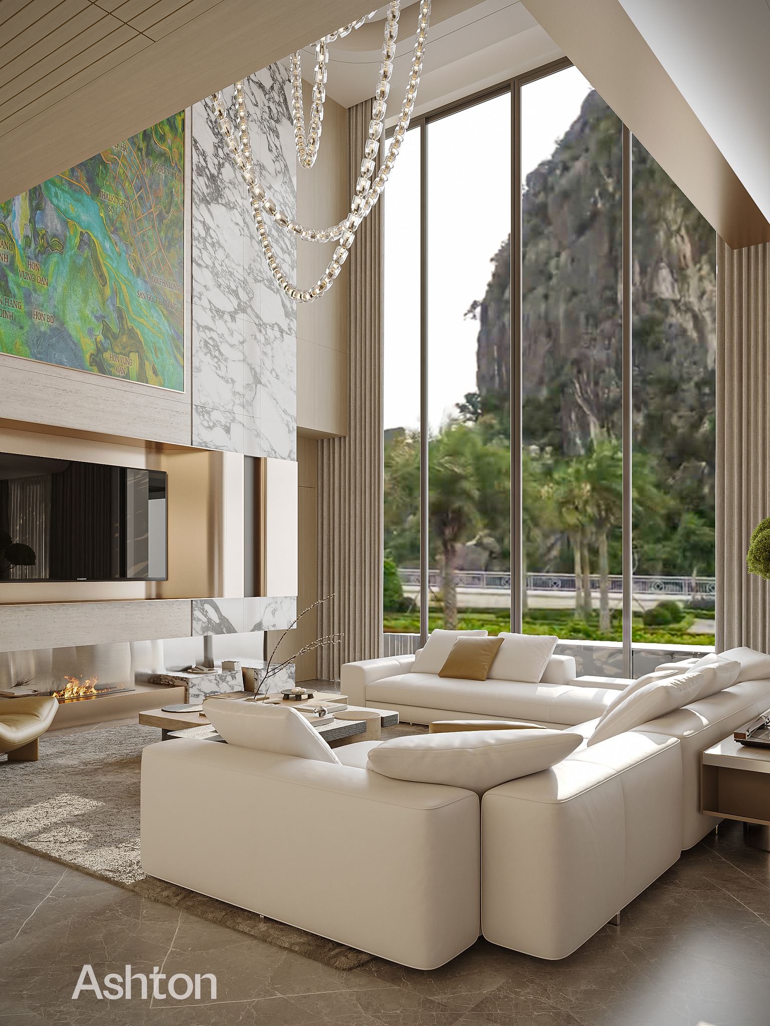 Sự sang trọng của Ashton lúc này không đến từ sự lấp lánh, mà đến từ “trọng lượng” của không gian. Những nhát cắt kiến trúc mạnh bạo, những khoảng thông tầng cao vút và hệ thống kính Panorama không khung tạo nên một cảm giác phóng khoáng, tự do nhưng đầy uy lực. Đây là nơi mà kiến trúc không chỉ để ở, mà để chiêm nghiệm về sức mạnh của con người trước thiên nhiên.