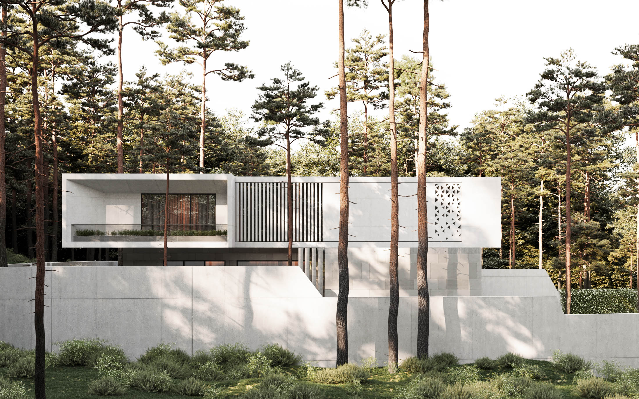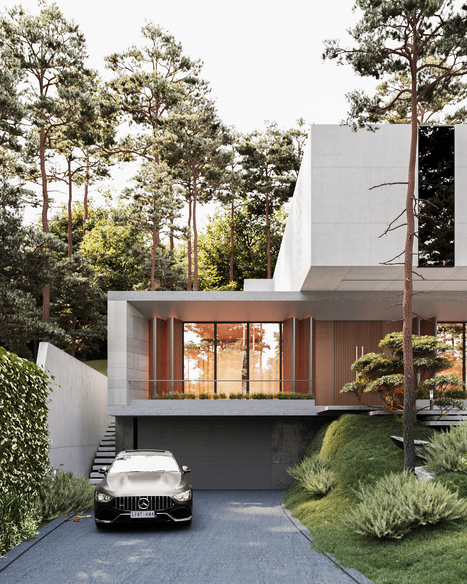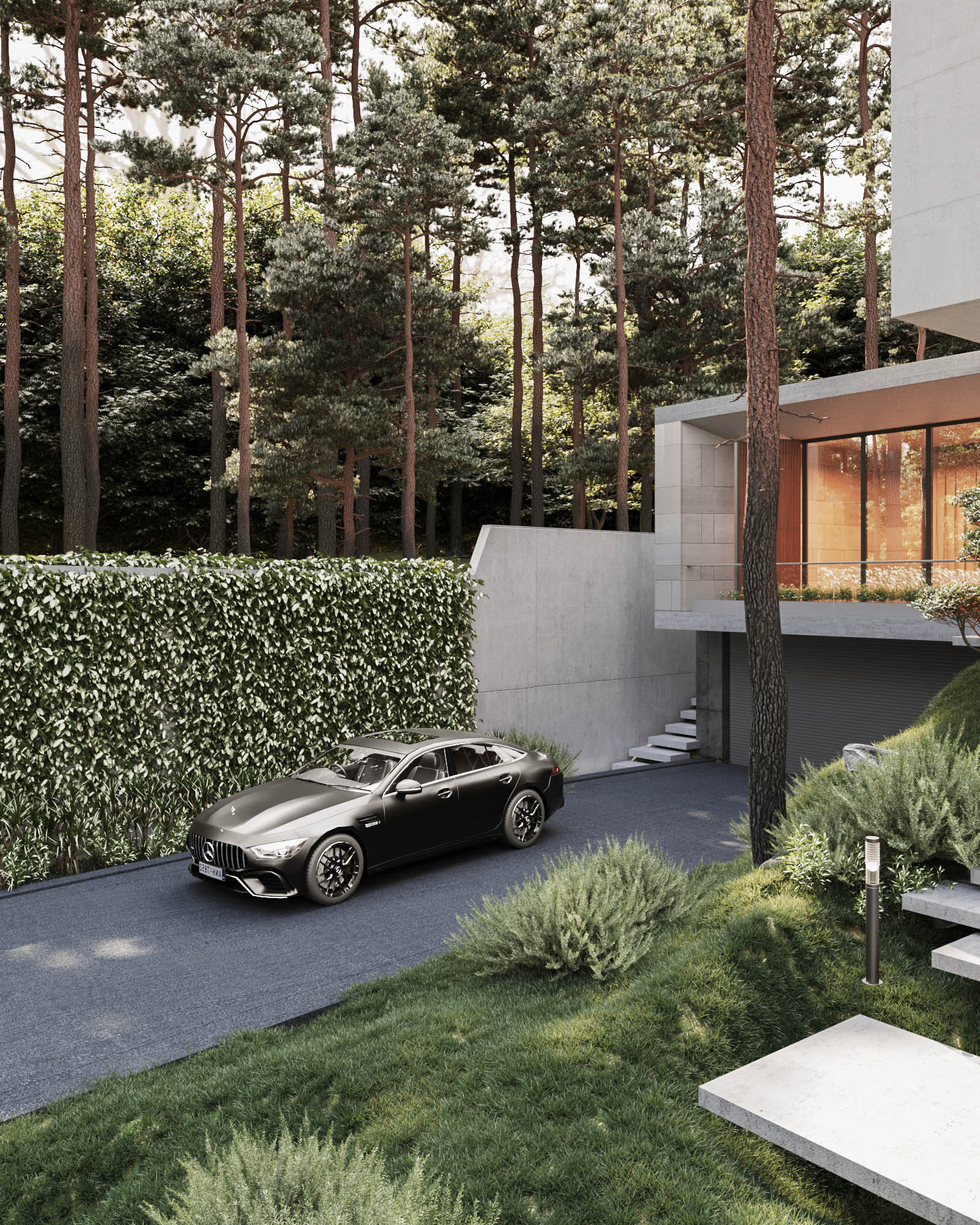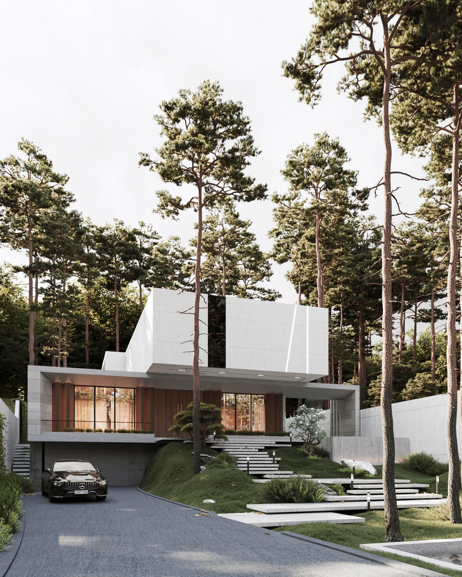 Một dự án ấn tượng được xác định bởi các hình thức hình học sắc nét. Một tầm nhìn táo bạo và làm chủ trong thiết kế nhà ở đương đại, thiết lập cuộc đối thoại trược quan giữa kiến trúc và cảnh quan xung quanh.