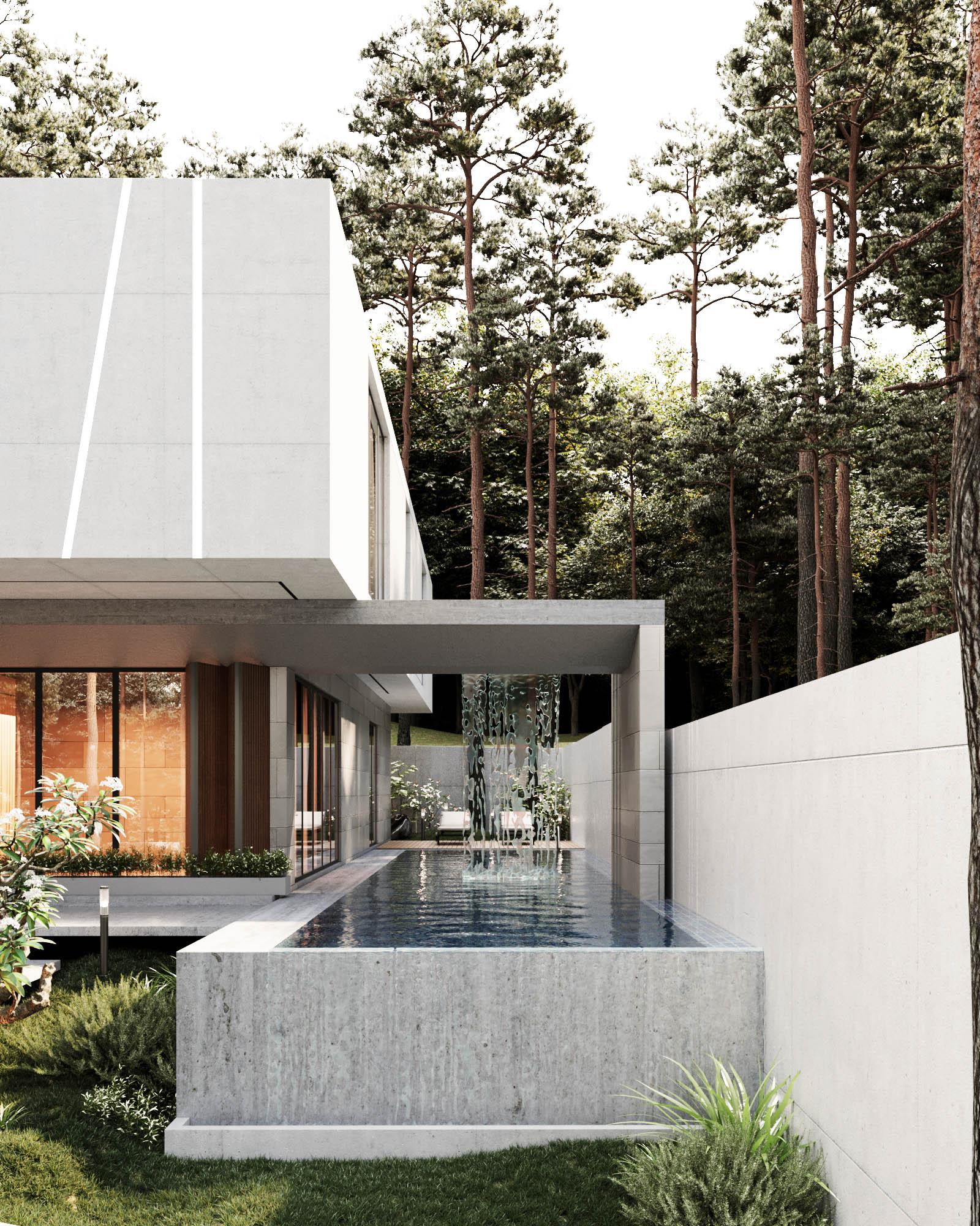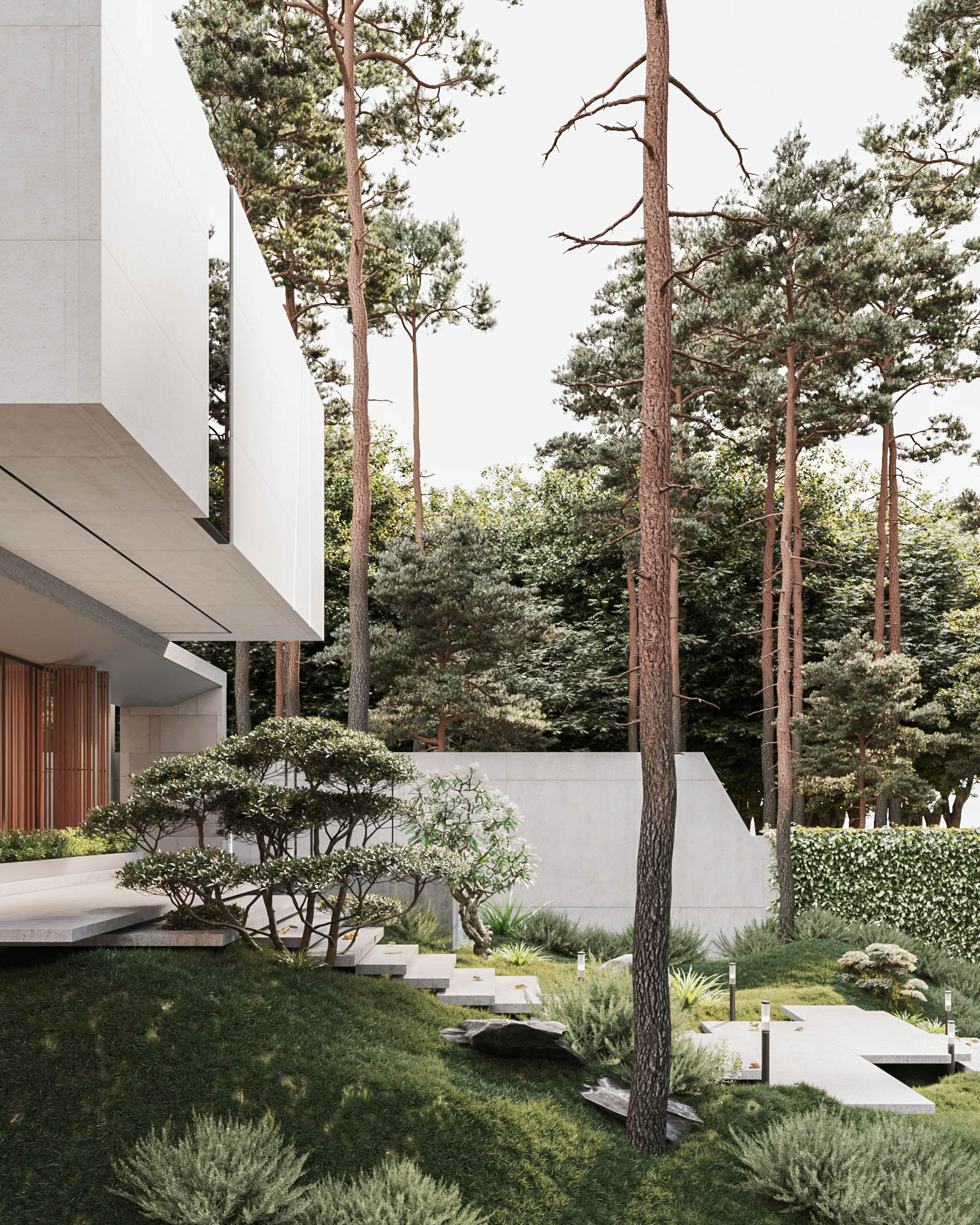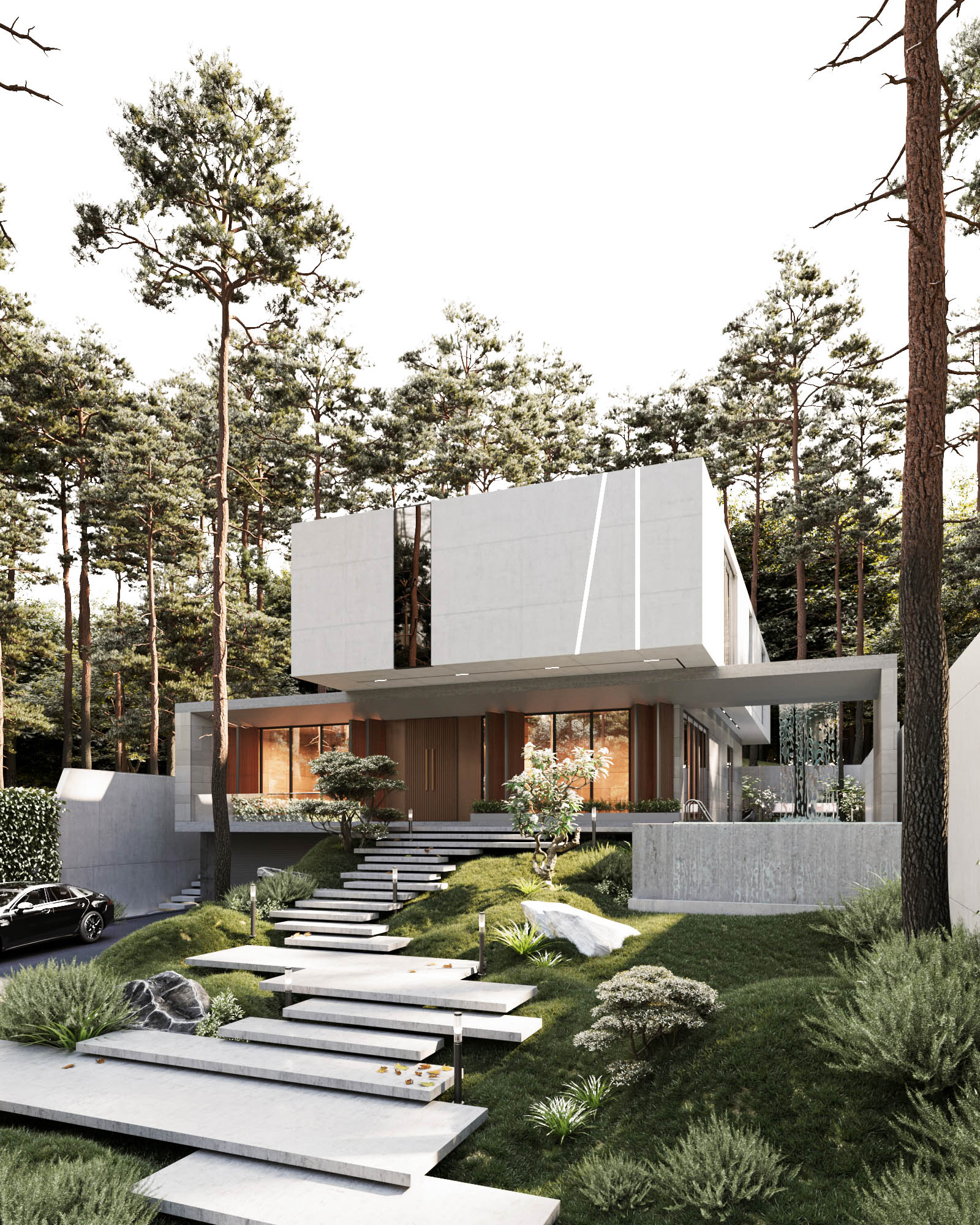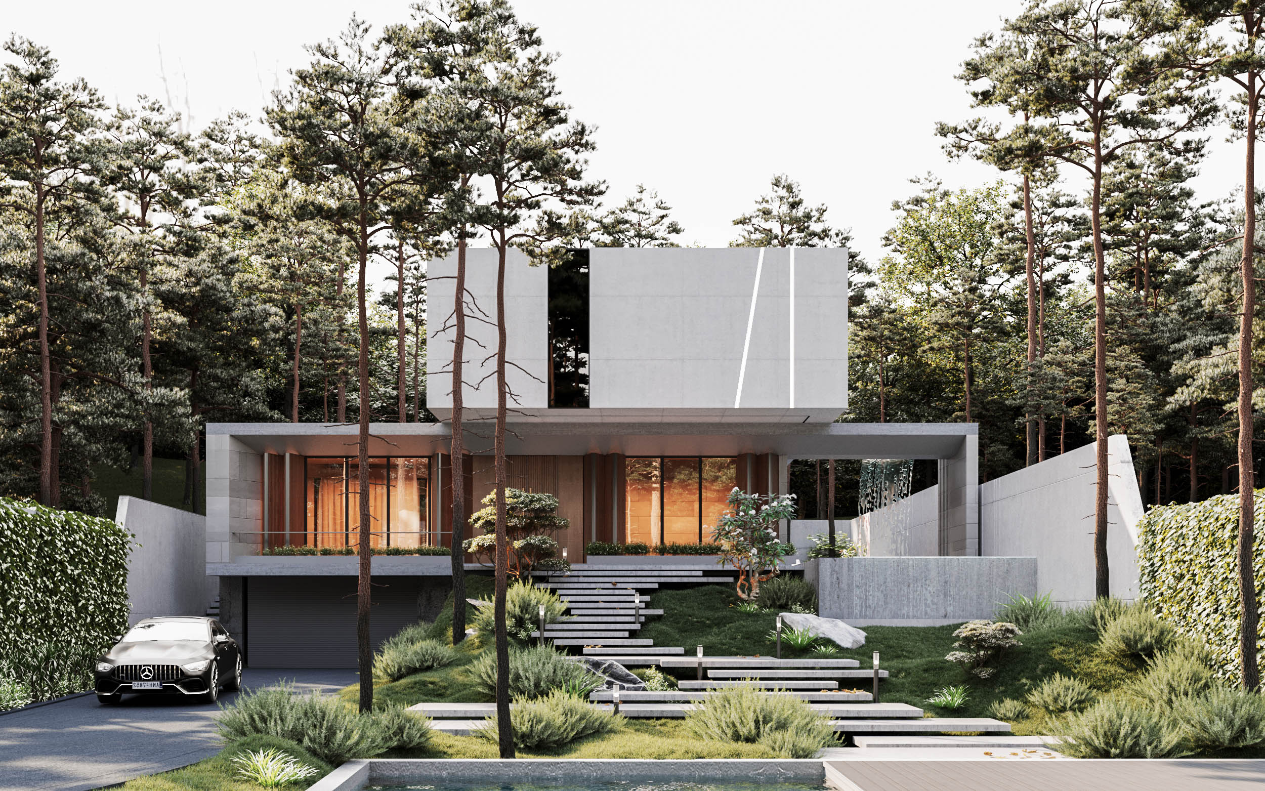 Một dự án ấn tượng được xác định bởi các hình thức hình học sắc nét. Một tầm nhìn táo bạo và làm chủ trong thiết kế nhà ở đương đại, thiết lập cuộc đối thoại trược quan giữa kiến trúc và cảnh quan xung quanh.