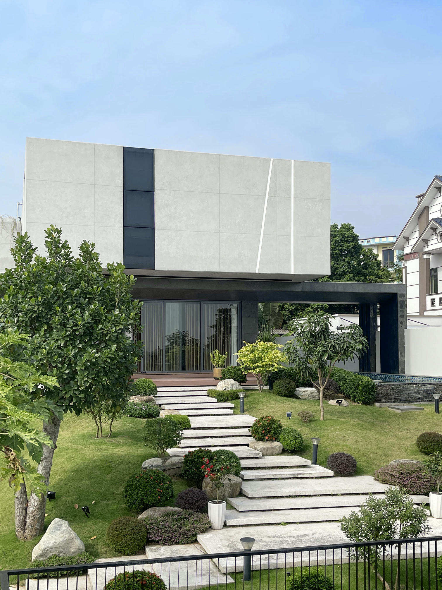 Tại Hiệp Hòa BẮc Giang, trên quỹ đất 550m² rộng thoáng giữa những đường cong địa hình tự nhiên, một công trình 200m² đã được kiến tạo như một cú chấm phá dứt khoát của tư duy kiến trúc đương đại. Đây là một villa được xác lập bởi các hình thức hình học sắc nét – một tầm nhìn táo bạo, mạnh mẽ và đầy tính làm chủ trước bối cảnh xung quanh.